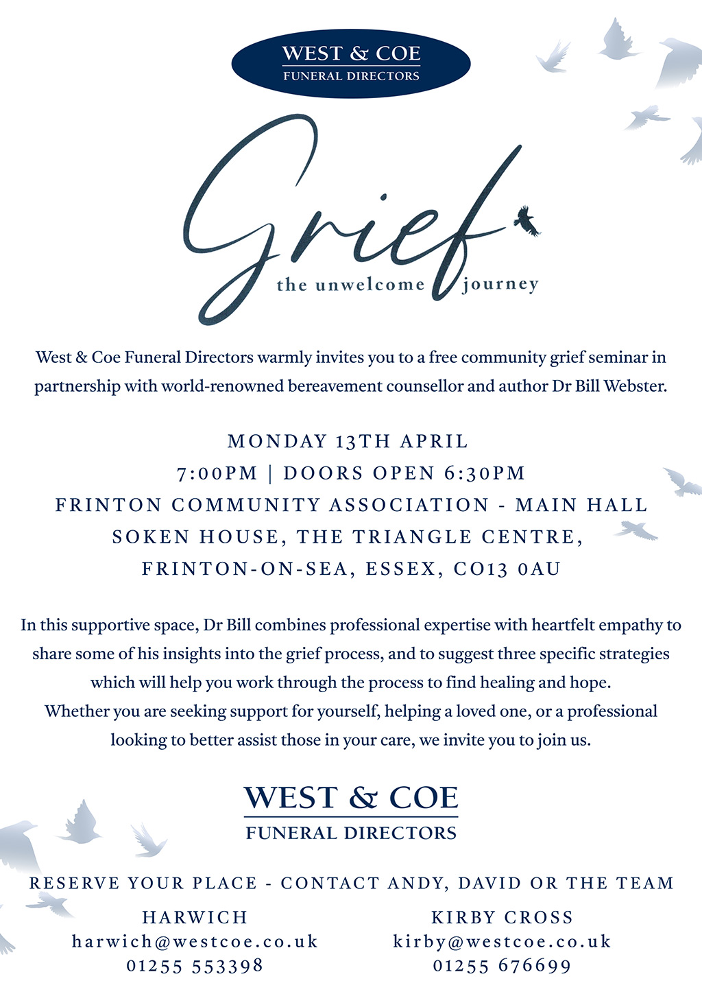 Harwich: harwich@westcoe.co.uk 01255 553398